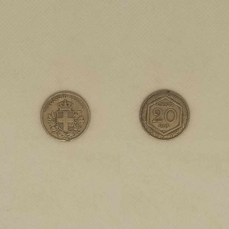 Una pequeña moneda del Reino de Italia acuñada en el último año de la Primera Guerra Mundial